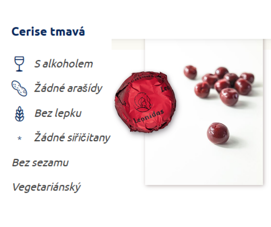 Vychutnejte si dokonalé spojení bezpeckové višně, hořké belgické čokolády a kapky višňového likéru. Pralinka Cerise Emballée přináší výjimečný gurmánský zážitek – ideální jako dárek i luxusní pokušení jen pro vás.